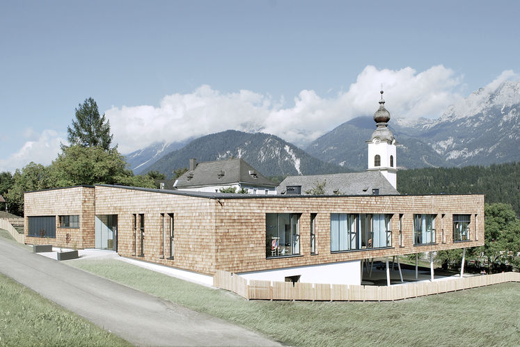 Поехали дальше. Как относятся к детишкам австрийцы? Австрийский садик построен по проекту Kreiner architektur.